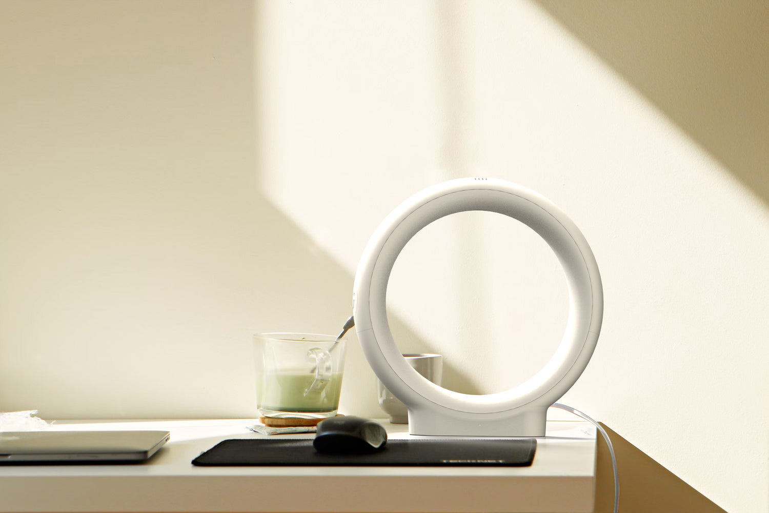 Simply place your hand in the ring, and all the lamps on your group will swirl the same color, no matter where they are!